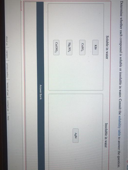 Solved Determine Whether Cach Compound Is Soluble Isol Uble In Waler Consult The Solubility Table To Answer The Question Soluble In Water Insoluble In Water Ncl Pici Cso Nico Anact Want